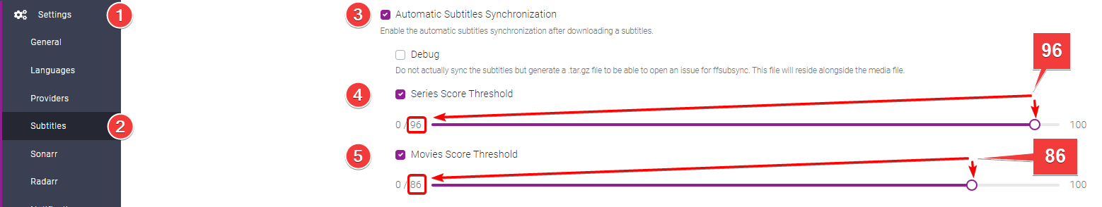 This will set the Synchronization Score Threshold, meaning at which score Bazarr will sync the subtitles.