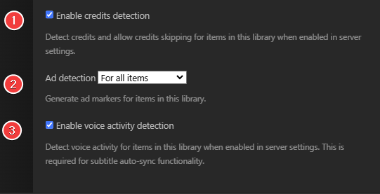 Generate intro detection for items in this library when enabled in server settings.