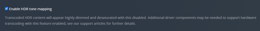 This feature allows Plex Media Server to maintain high visual fidelity of content, by applying tone mapping to convert it to SDR when transcoding HDR content.